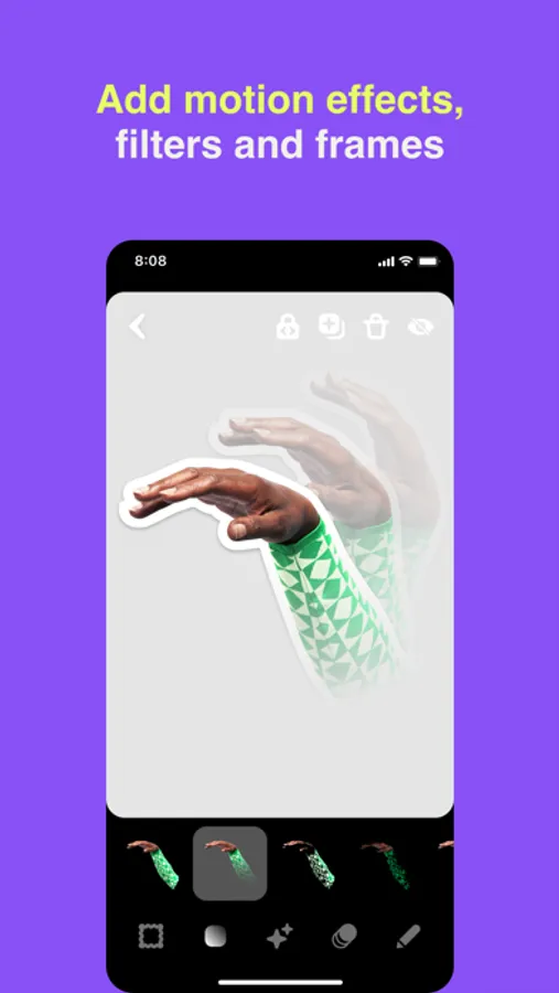 • Add animations and effects (motions, filters, and frames!) to make your Shuffles pop