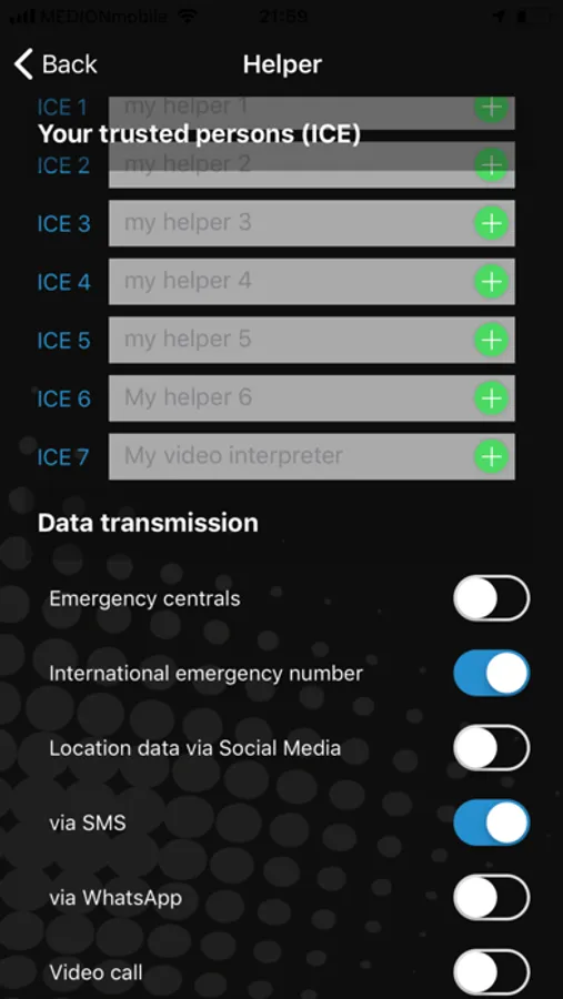 So that you get optimized help in case of emergency, please complete all details in the menu items "SOS data" and "Helper".