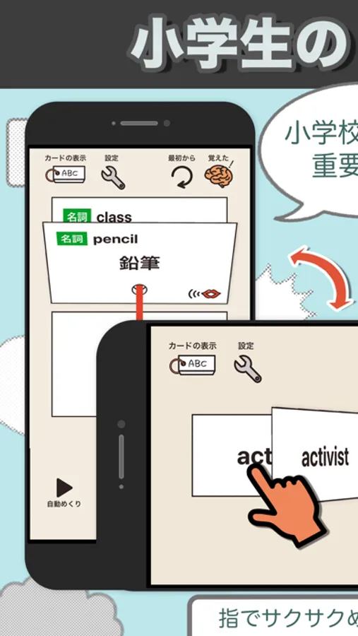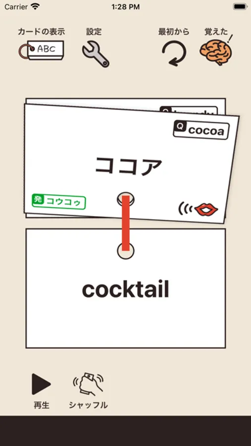 ・覚えたボタンを押すとめくった側のカードを非表示にできます。