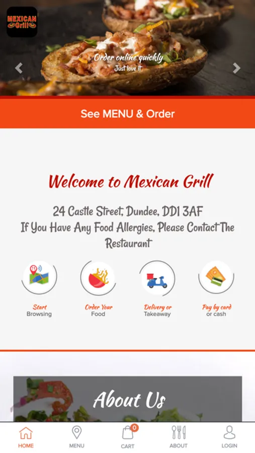 Order food online in Dundee! It's so easy to use, fast and convenient. Try our new, online website which contains our entire takeaway menu. You can now order online, all your favourite dishes and many more delicious options, and have them delivered straight to your door in no time at all. Here at Mexican Grill, we are constantly striving to improve our service and quality in order to give our customers the very best experience. As a result, we are finally proud to unveil and introduce our latest improvement, our new online ordering website! You can now relax at home and order your favourite, freshly prepared meals from Mexican Grill, online. You can even pay online! Mexican Grill will always be offering great food at affordable prices. Please feel free to browse our new website and place your order online. Remember to check our new online ordering site to get up to date prices and exclusive special offers, limited to our online customers only! Thank you for visiting Mexican Grill. We hope you enjoy our online ordering website and your food.