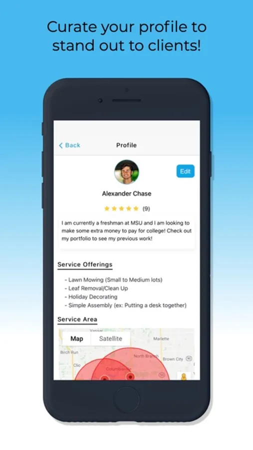 3) Customize your Gas Money Profile by uploading a profile picture, writing a unique bio, and uploading relevant pictures to your job portfolio.
