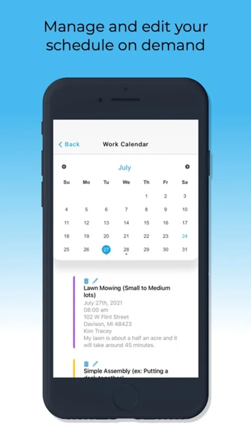 3) Once your job request is accepted, you can track it via our in-app calendar.