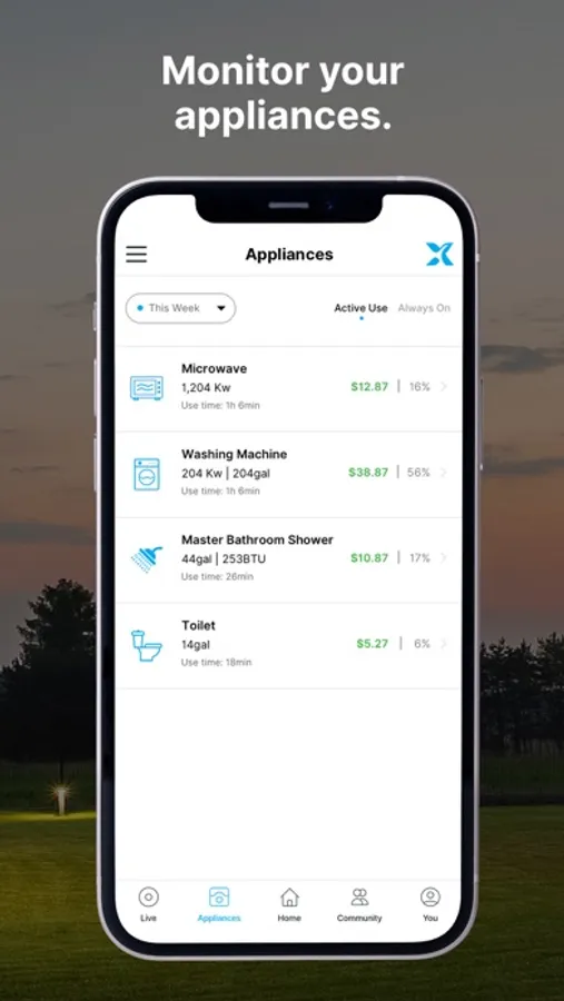- See how much energy and water your appliances are using and how much it’s costing you