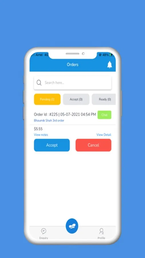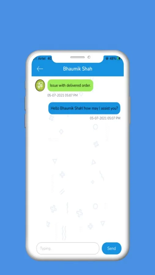 - After adding item in the cart, its easy to add the delivery order and they can place the order, also this app will give us facility of real time chat between them and Supplier for asking any queries related product, delivery and price