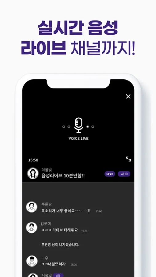 4.다양한 주제로 나만의 ROOM(커뮤니티 공간)을 만들어 접속한 사람들과 5.실시간 채팅과 영상 라이브, 음성라이브를 할 수 있어요