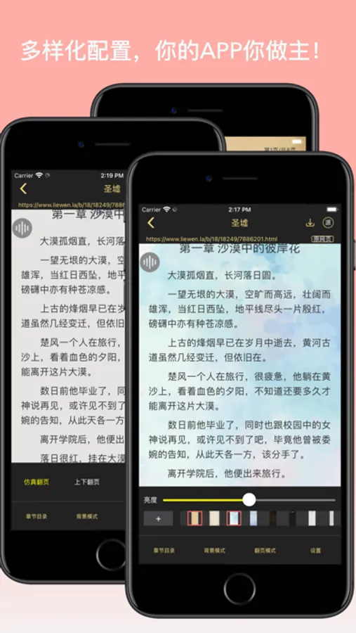2.页面自定义 高度自由化阅读配置 良好的翻页体验 内置多种翻页模式