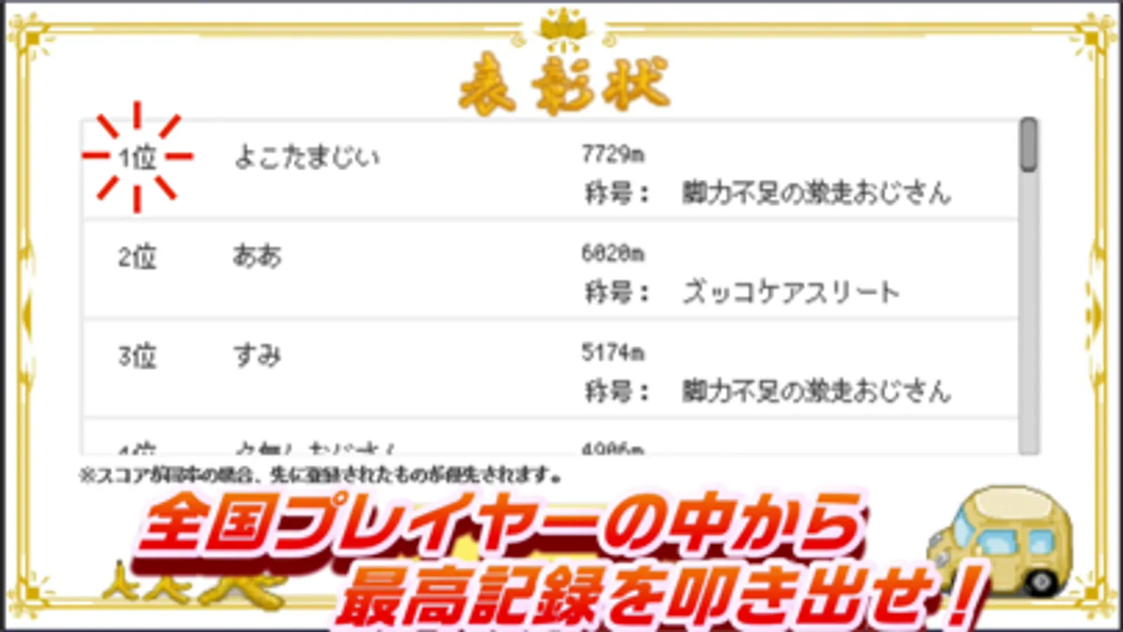 ランキングボードにて全国のプレイヤーと走った距離を競い合える!