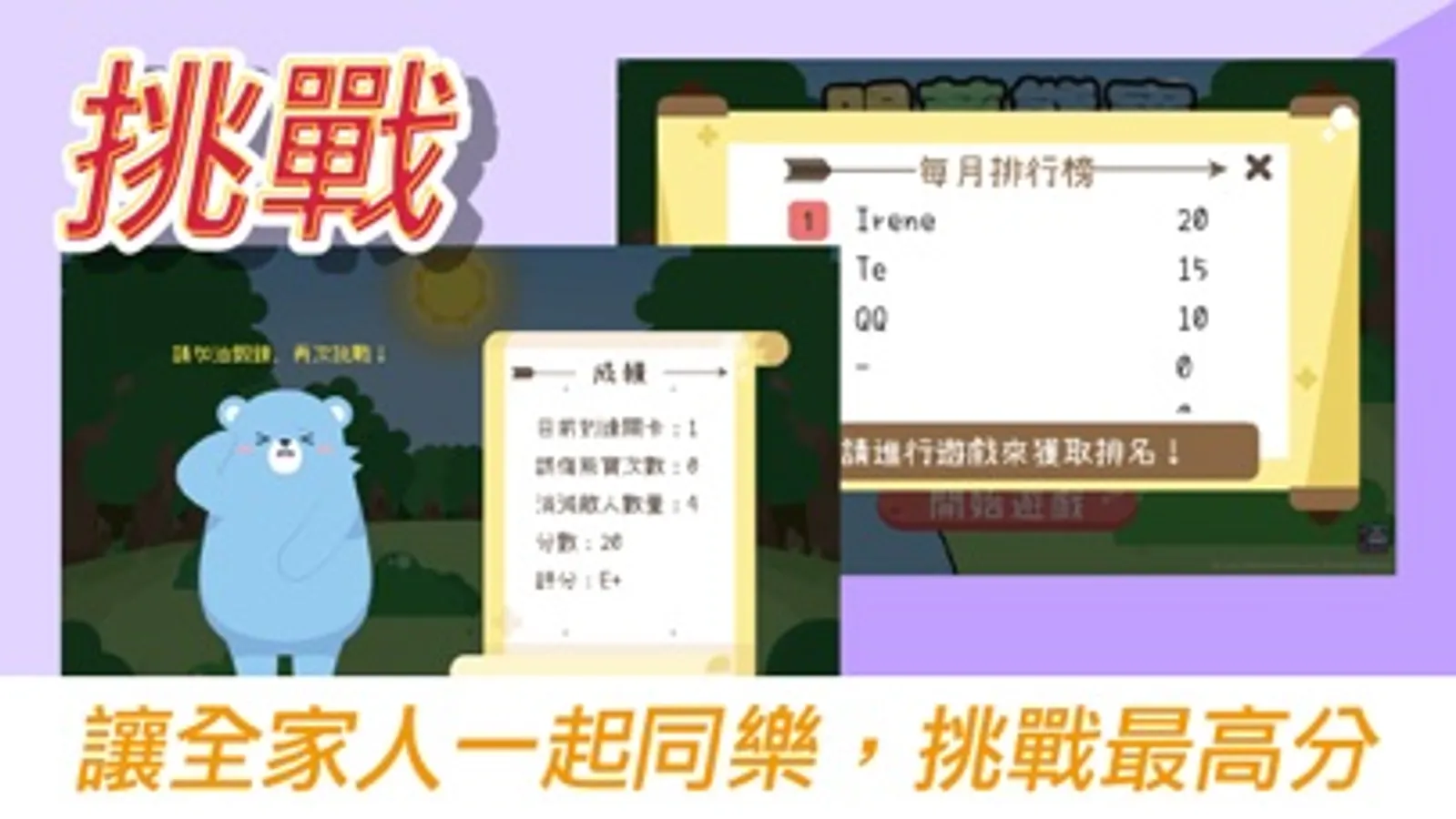 ④ 挑戰-讓全家人一起同樂,挑戰高分。