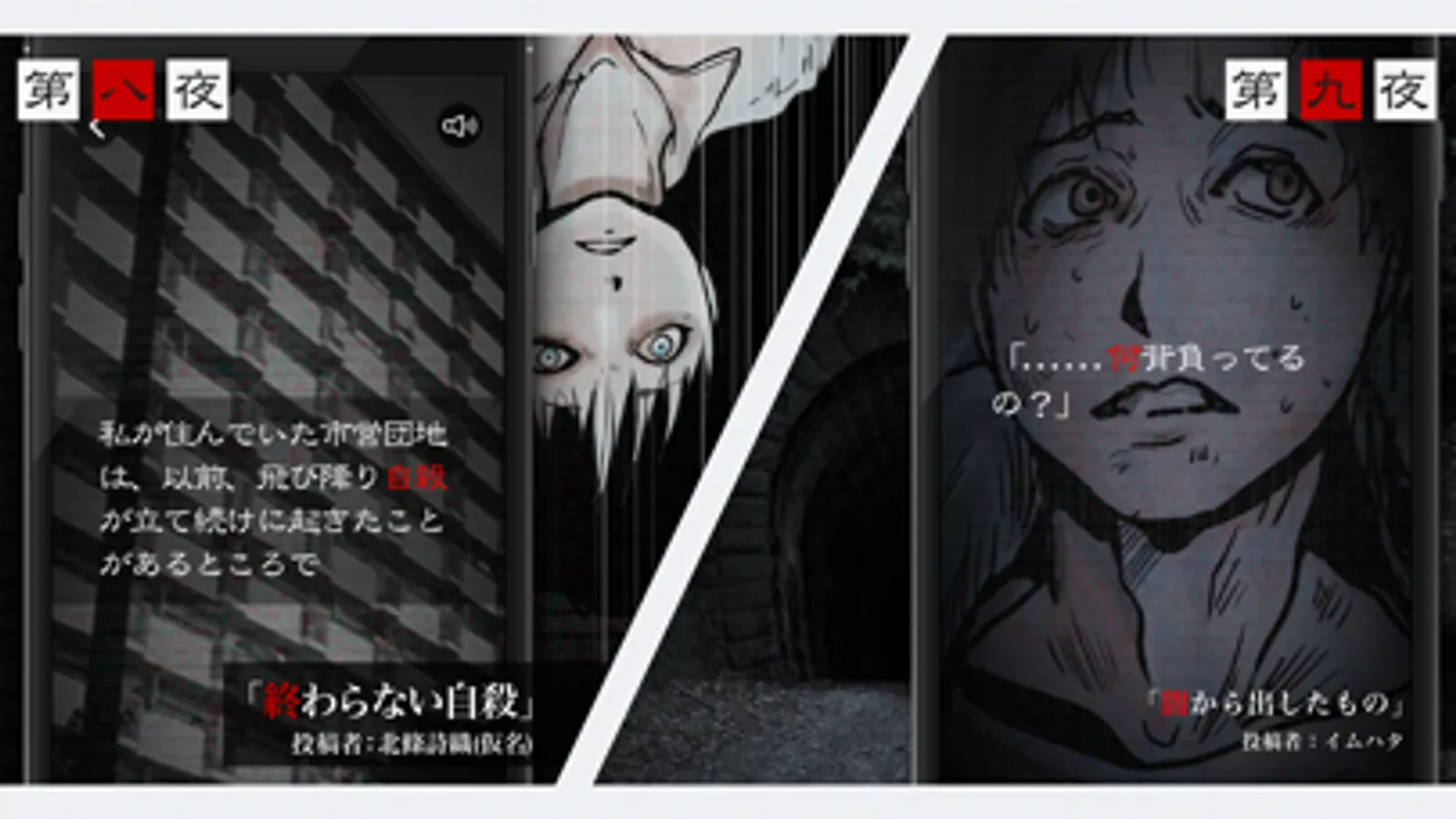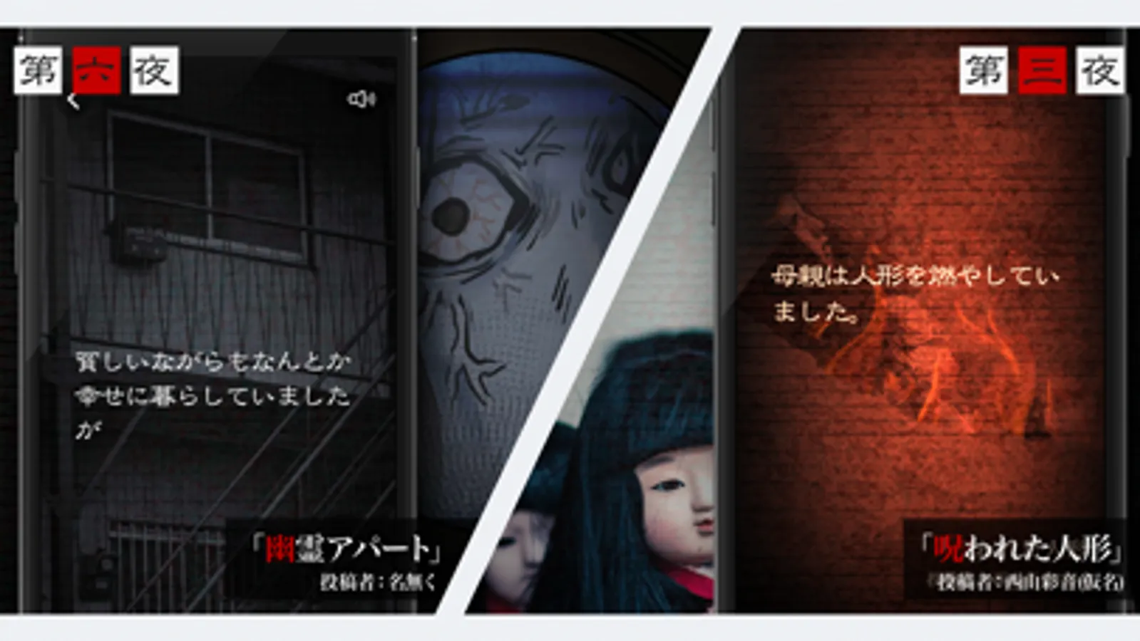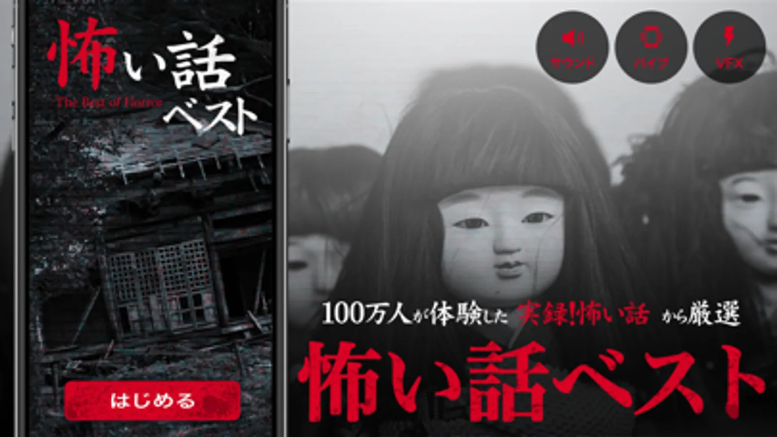 震える!鳴る!現れる!五感で脳を震わせるホラー短編集!深夜ひとりで迫りくる恐怖に耐えるのも良し、友達同士で一緒に楽しむのも良しの無料のホラーアプリです!
