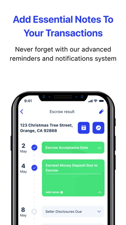 Agent Tools: Contingency Dates brings you the most accurate contingency calculator on the market and a plethora of tools in the palm of your hand. Operate as a premier agent and manage all of your ongoing and previous deals in one place. Record images, addresses, property statuses and all related information to a transaction, accessible all on one easy to use dashboard. You even get access to your own advanced in-app calendar, letting you log events, manage appointments, and integrate your own personal calendar to coordinate days off and more.