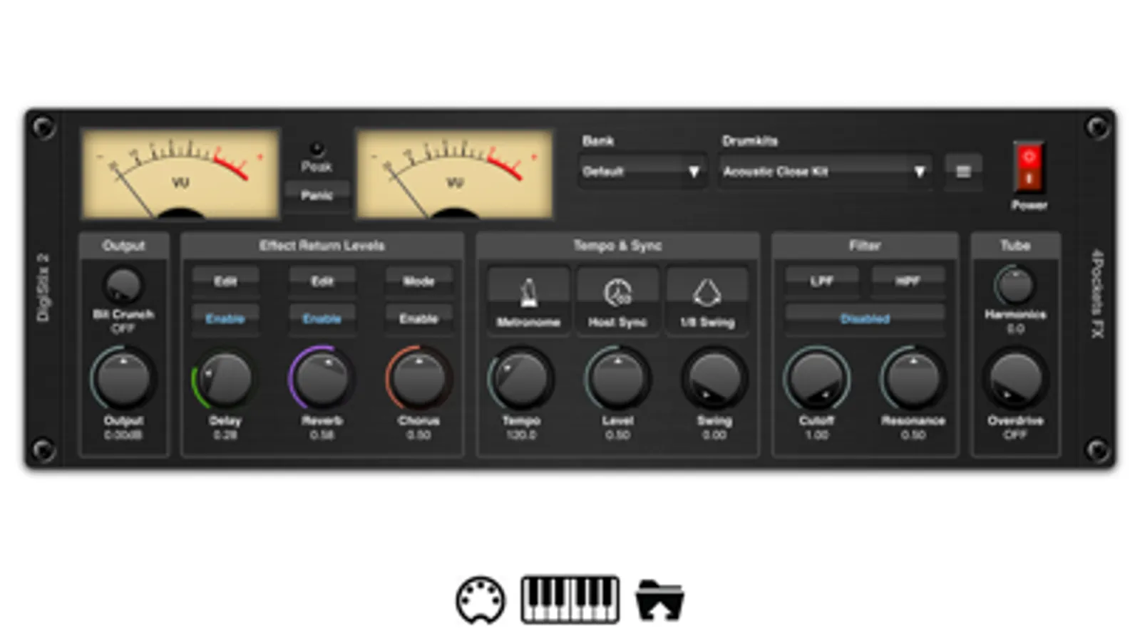 • Build in Delay, Reverb, Overdrive, Bit Crunch and LP/HP Filters.
