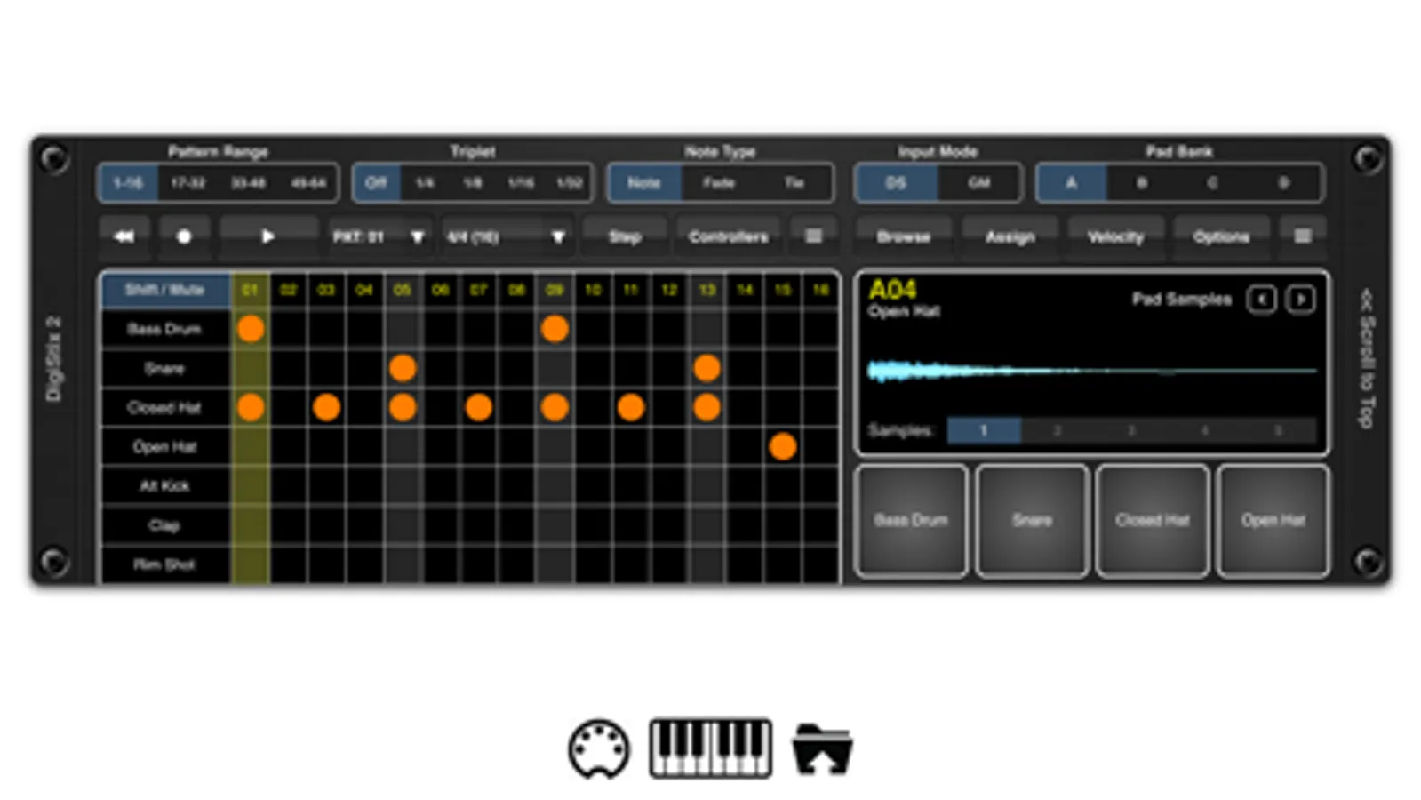 DigiStix 2 now supports GM and original DS drum kit layouts, and includes a sophisticated multi-layer Auto Sampler, capable of recording new GM compatible drumkits automatically from your hardware. It is 100% backward compatible with the original app, and can be used as a drop-in replacement.