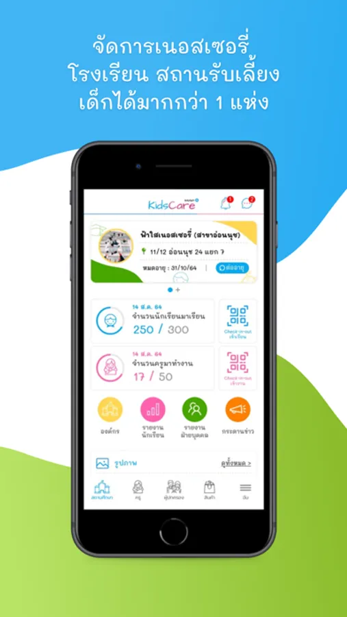 แอปพลิเคชั่นให้บริการระบบบริหารจัดการเนอสเซอรี่ หรือ โรงเรียนของท่าน โดยจัดการผ่านแอปพลิเคชั่น “คิดส์แคร์พลัส”