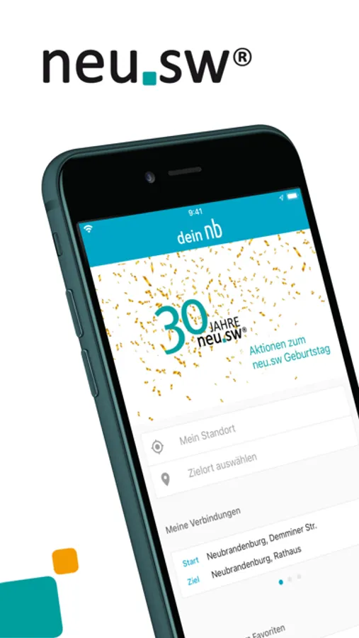 Die „dein nb“ App hilft den Alltag in Neubrandenburg leichter zu organisieren. Sie bietet eine spürbare Erleichterung bei einer Vielzahl der täglichen Aufgaben. Die App für Neubrandenburg vereint die Bereiche Mobilität, Nachrichten, Wohnen und Familie & Freizeit. Im Mittelpunkt steht eine interaktive Karte über die Routen geplant werden können. Einzelne Kategorien wie Sportvereine, Parkplätze, Eventlocations, neu.sw Kundenbüros etc. werden auf der Karte angezeigt. Dabei können Standorte als Start- bzw. Ziel für die Route dienen und auch als Favoriten gespeichert werden. Tickets lassen sich unkompliziert gleich für die jeweilige Route online kaufen. Neben der interaktiven Karte werden u. a. auch Services wie der Müllabfuhr- und Eventkalender, regionale Nachrichten und die Zählerstandübermittlung via Smartphone-Kamera angeboten. Über individualisierbare Push-Benachrichtigungen können Nutzer auf dem Laufenden gehalten werden und verpassen zum Beispiel nie mehr die blaue Tonne rauszustellen oder ein Event in und um Neubrandenburg.