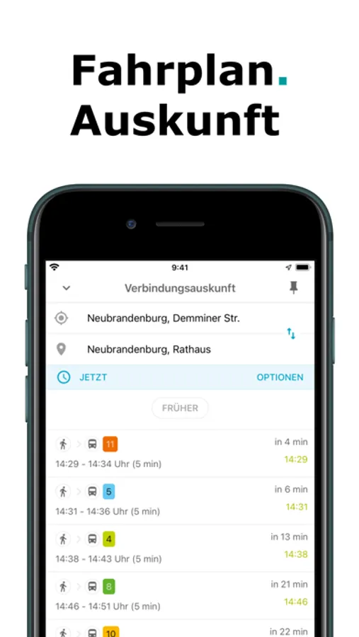 Die Fahrplanauskunft zeigt in Echtzeit alle aktuellen Ankunfts- und Abfahrtzeiten je Haltstelle im Stadtbusverkehr Neubrandenburg an. Passend zur Route werden neben dem Fußweg auch die Bus- und Zugverbindungen angezeigt. Auch Routen für einen späteren Zeitpunkt können über die App geplant, gespeichert und mit Freunden und Familie geteilt werden. Direkt nach der individuellen Routenplanung das passende Online-Ticket kaufen – kein Problem! Auch das Verkehrsmittel Auto wird in der App berücksichtigt. Touristen und Bürger aus Neubrandenburg erhalten einen Überblick wo sich welcher Parkplatz befindet und wie einzelne Parkplätze ausgelastet sind.