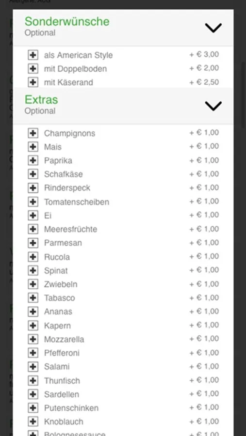 - Abholung / Zustellung oder Vorbestellung
