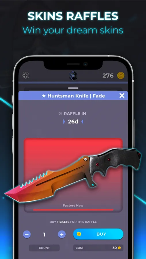 Why? Skin Ape gives you a chance to win your favorite CSGO skins completely for free! Take CSGO quizzes to earn coins. Next, use them in the item shop or for case opening! There are many skins and cases waiting for you. The skins will be sent directly to your Steam profile. It's so simple! Check it right now and power up your CSGO inventory!