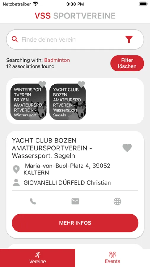 Der Verband der Sportvereine Südtirols (VSS) ist nicht für den Inhalt dieser Seite/App verantwortlich. Jeder Verein ist selbst für die von ihm angegebenen Informationen und Inhalte zuständig.