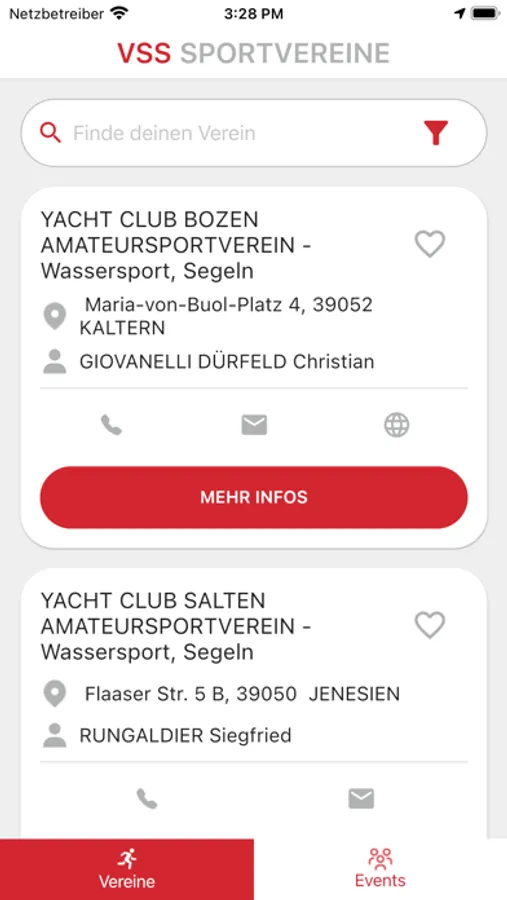 In der „VSS-Sportvereine“ App finden Sie alle Südtiroler Amateursportvereine, die Mitglieder beim Verband der Sportvereine Südtirols (VSS) sind. Der VSS möchte mit dieser App die umfangreiche Tätigkeit der Südtiroler Amateursportvereine der Öffentlichkeit präsentieren und alle Sportinteressierten und -begeisterten mit den Sportvereinen in Verbindung bringen. Durch die Eingabe von gewünschten Filtern können Sie die unterschiedlichen Sportvereine und deren Sportangebote in Ihrer Nähe finden.