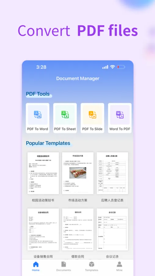 Document Manager supports online editing of documents such as Word, Excel, PPT, PDF, etc. You can import Word documents and Excel tables from your phone for editing, or create new Word, Excel, PPT, and PDF files.