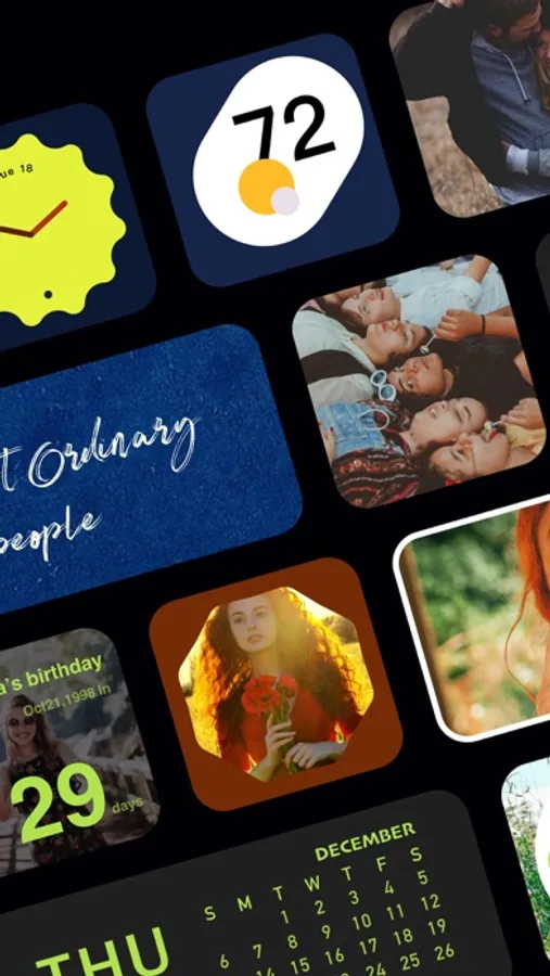 Widgets categories including clock, countdown, quote, date, calendar, and more. We have excellent pre-made Widgets, as the widgets are customizable, you can change fonts, theme colors, and even the background color to fine-tune them in line with your preference.
