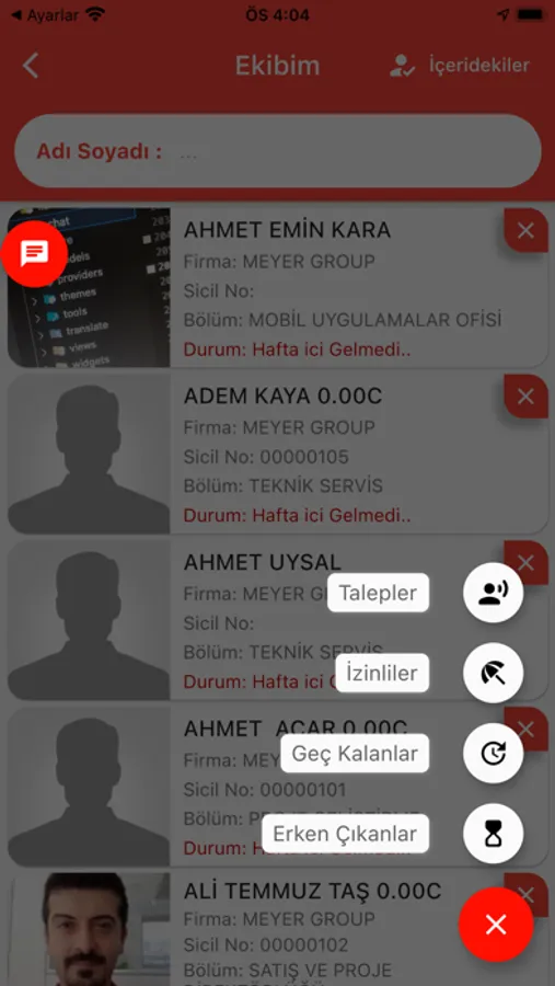 - İzinli, Geç Kalan ve Erken Çıkan personelleri görebilir