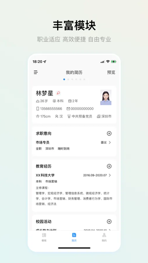 There are many resume templates for you to choose, and you can choose any template for resume production according to your needs.