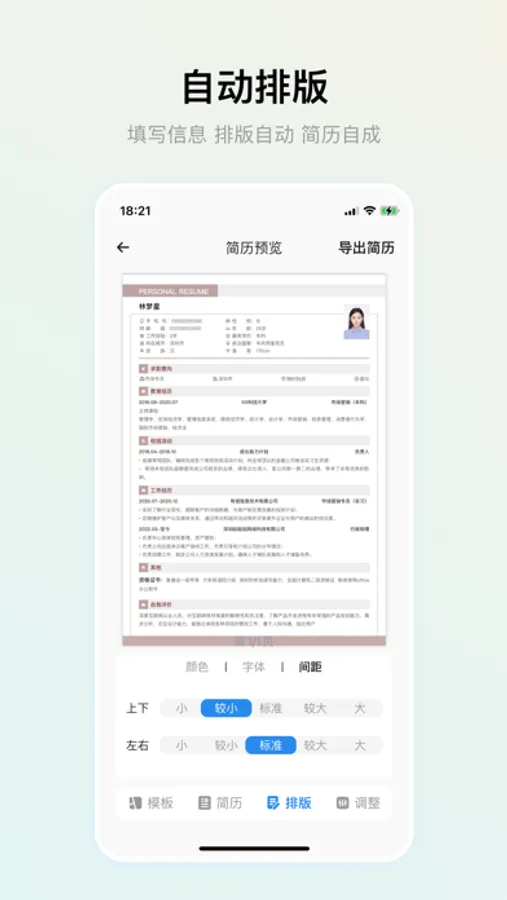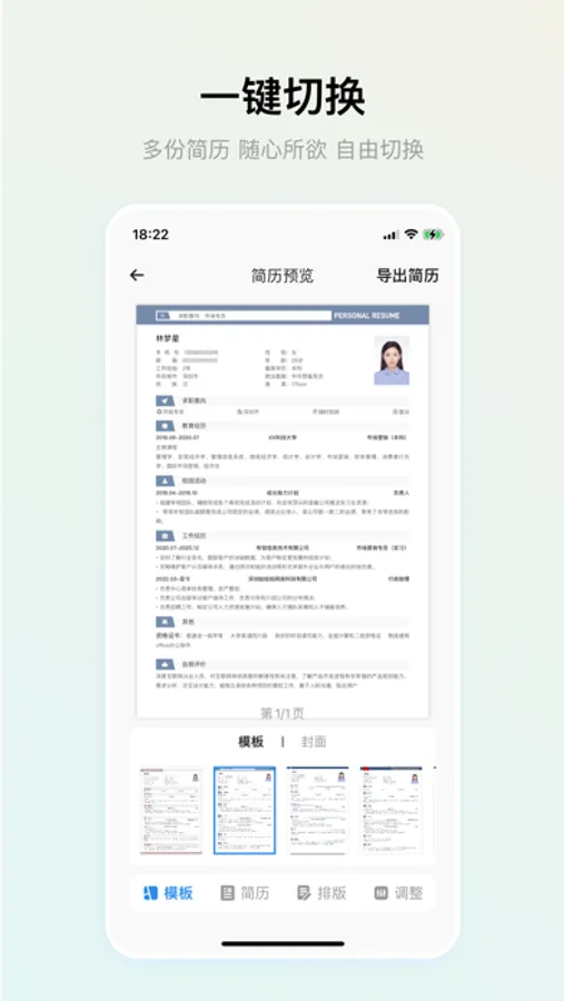 You can adjust the layout of any template and generate a simple and generous resume with one click.
