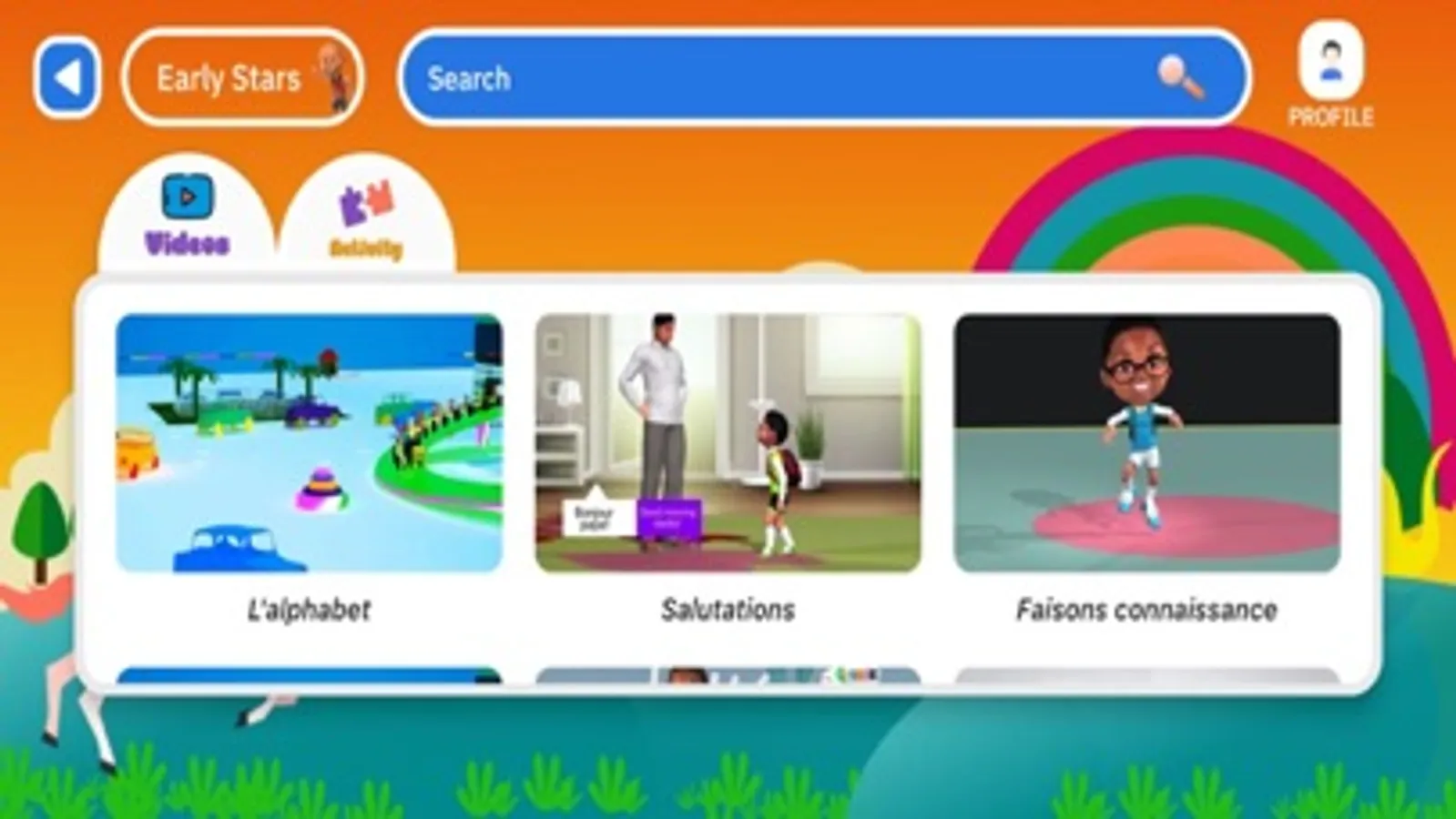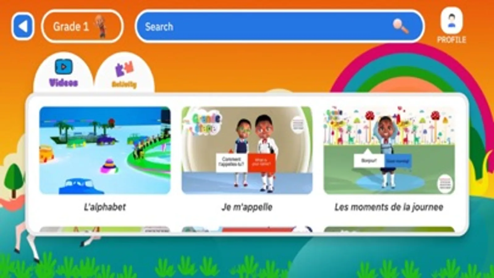 GrandeÉtape (Early Stars and Grade 1-5) is a 3D animated cartoon French language learning aid, structured according to the Universal Basic Education Scheme at Lower and Middle Basic Education Levels. Designed to introduce pupils to the French language communicative dialogue approach, to enhance the acoustic and phonetic components often neglected.