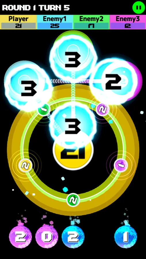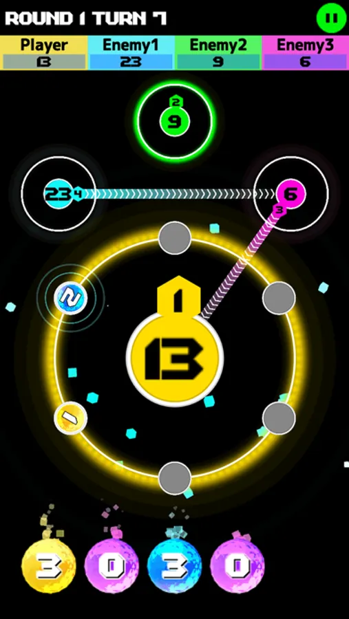 When all slots are loaded with mana, the circle will cast (attack or defend).