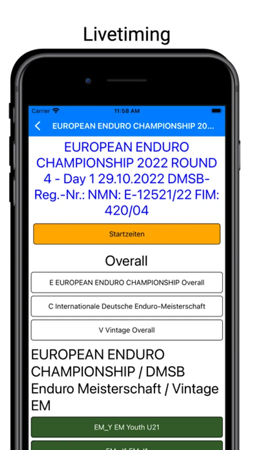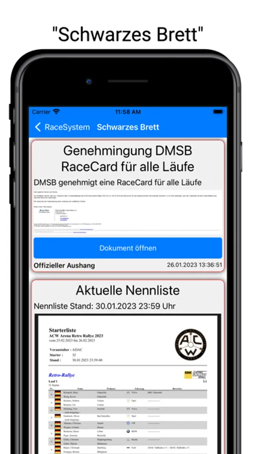 Alle wichtigen Informationen vom "Schwarzem Brett" sowie das Livetiming einer Veranstaltung, alles in einer App!