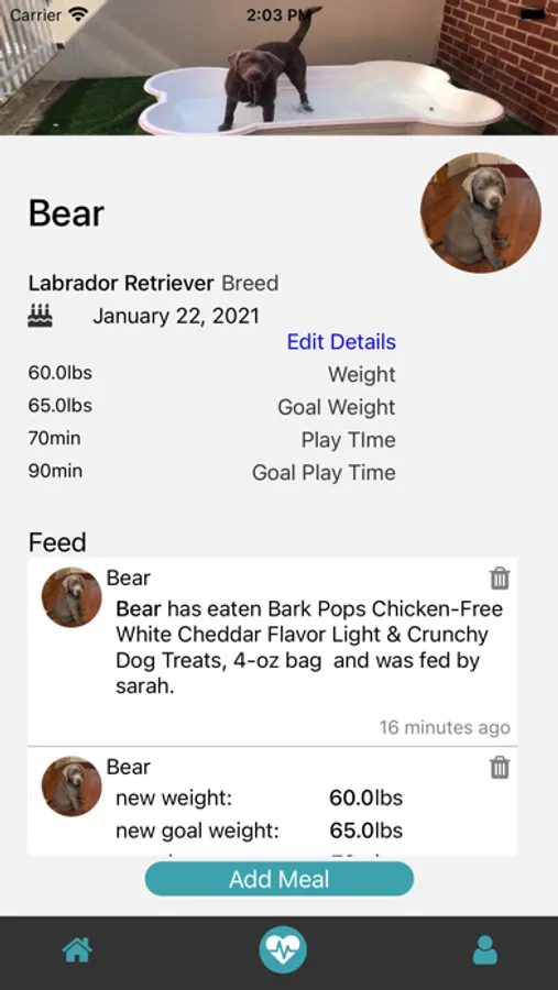 PetHealthPal is an app to help you manage your pets health. Track weight, food, and treats that you give your pet!
