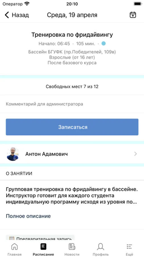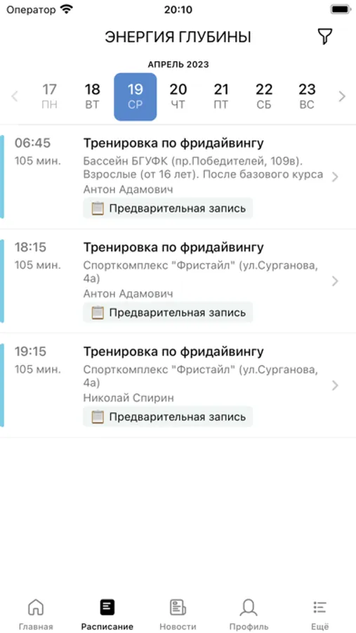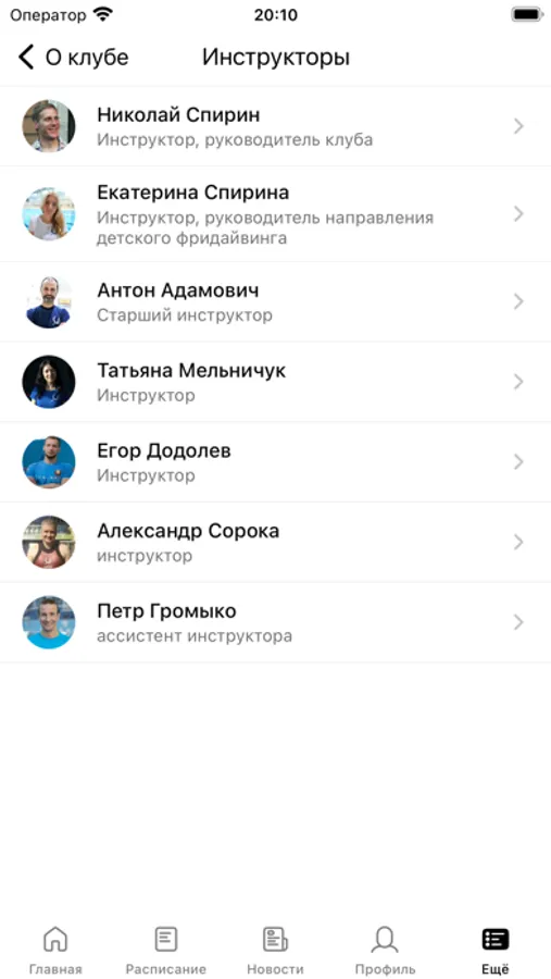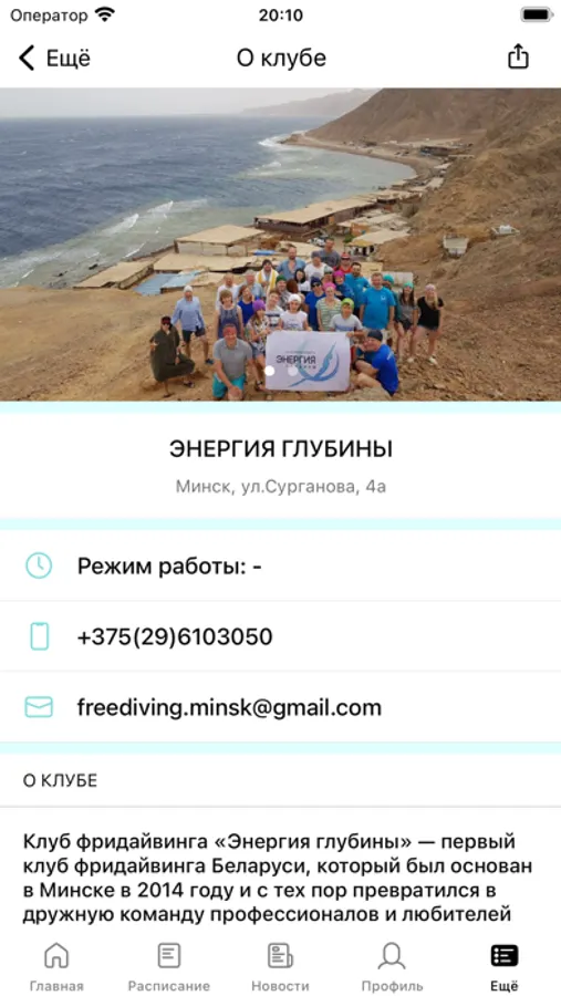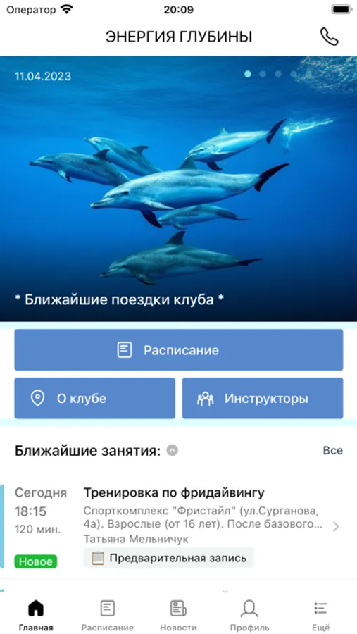 С помощью приложения вы можете следить за новостями, расписанием занятий в клубе, поездках для погружений в интересных местах, оперативно получать информацию об изменениях в расписании и специальных предложениях.