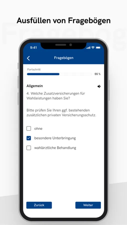 - Fragebögen und Checklisten, die Sie bequem online ausfüllen können