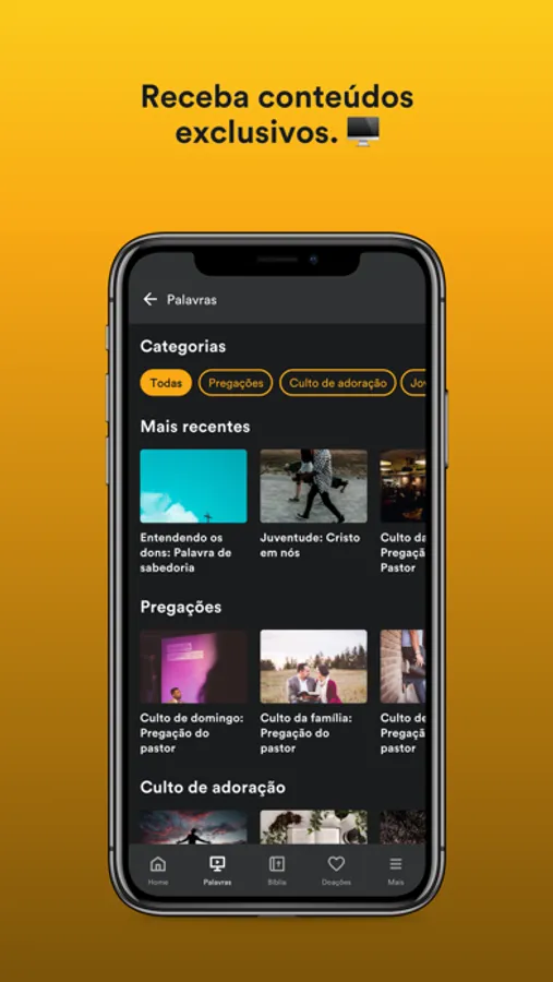 - Siga a agenda e fique por dentro de tudo que acontece na igreja, inscreva-se em eventos e tenha seus ingressos sempre com você.