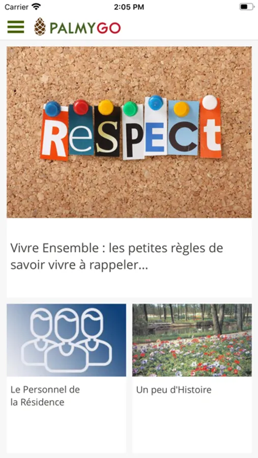 Palmygo est un outil informatif au service de la Résidence de lapalmyqre. Cette application permet de tout savoir sur les différentes activités proposées aux résidents (animations, sports, soirées, réunions...) mais aussi d'être informé sur la vie de l'Association des Propriétaires : gestion et entretien du Parc, travaux du Bureau... On y trouve aussi des informations pratiques pour la vie courante et le savoir vivre ensemble.
