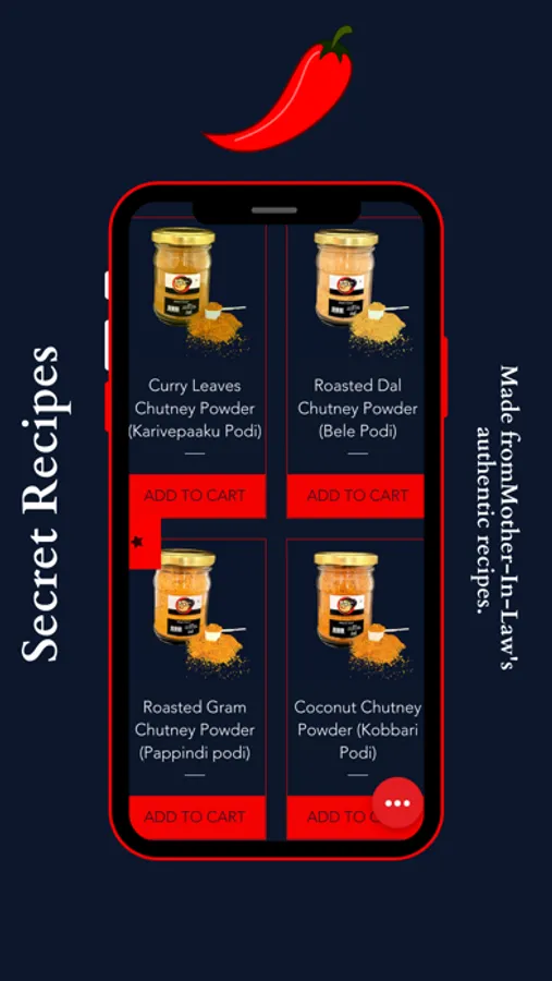 - Select Curry Leaves Podi, Peanut Chilli Podi, Roasted Gram Podi, and Roasted Dal Podi from the menu.
