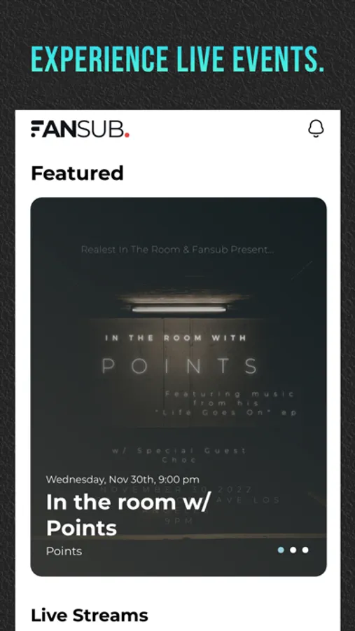 Get access to exclusive live events on Fansub! Stay connected with the artists you enjoy and show them your support. Be the first to receive a notification when a new concert has been scheduled. Discover talent from around the world.