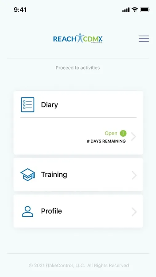 This is a mobile app in support of the REACH CDM X Study. You will only be able to login and utilize this mobile application if you have been contacted and received an email invitation to register. This application is brought to you by iTakeControl, it is designed to allow participants to view training material and submit daily diary surveys and video responses.