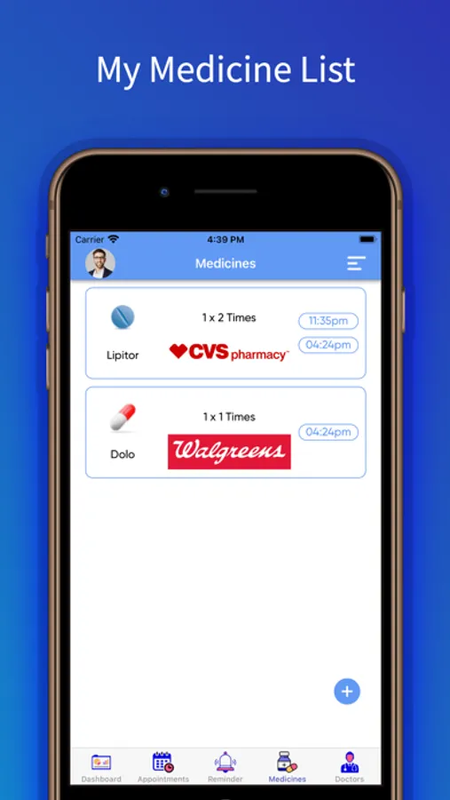 • Add Medicines for each user, with name, doctor prescribing it, pharmacy you are using, treatment for the illness, medicine type, medicine name, purchase date, quantity purchased and also adding an image of the medicine or by taking a picture or uploading your own.