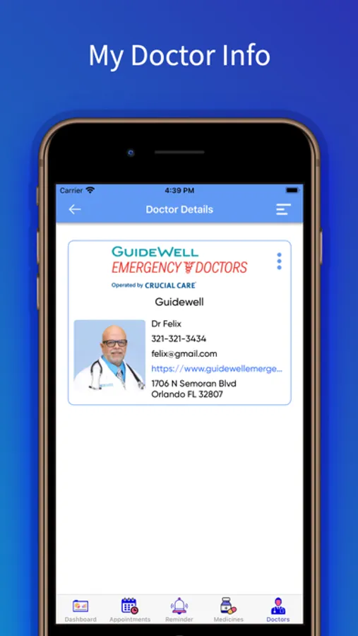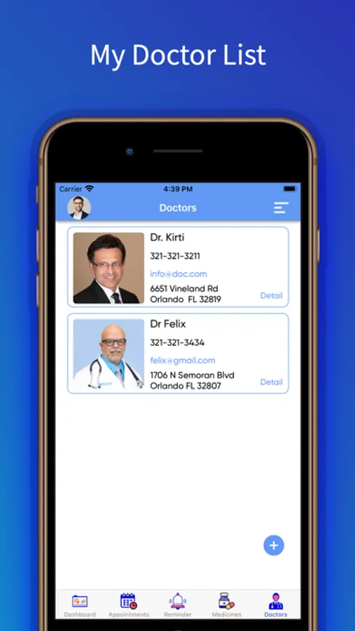 • Add Doctors you connect with all details including email, address and click to call or click to look up map
