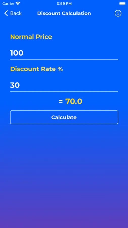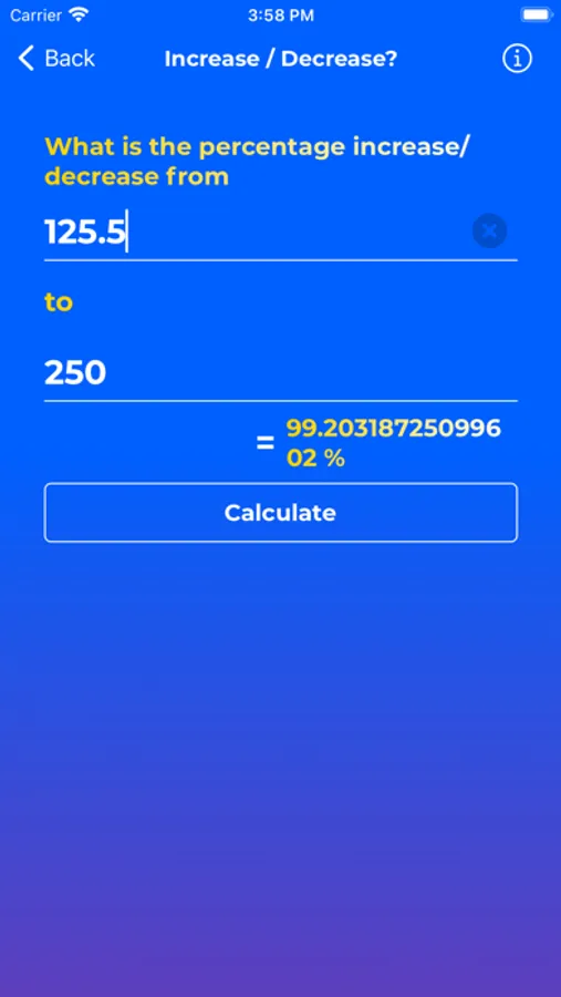 Percentage Calculator App's strongest feature is that any value can either be a source or result of a calculation - just enter the values you know and it will tell you the remaining ones!