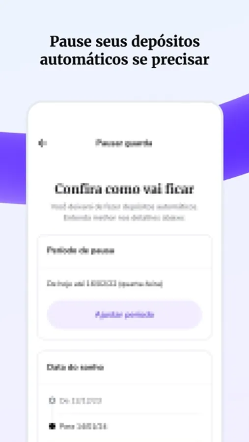 Não se preocupe se surgir um imprevisto. Se precisar, você terá acesso à sua quantia após 30 dias para aportes via cartão de crédito e na hora para depósitos via PIX.