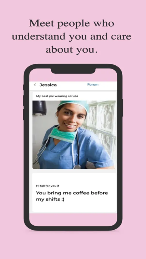 The best way for people working in healthcare to meet, connect, and feel understood. We know how hard it is to care for others, and we want you to have support!