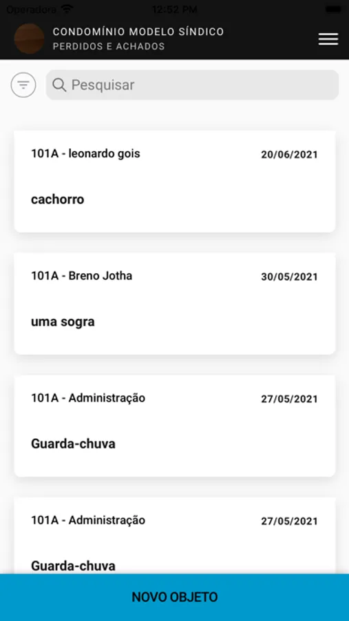 Ocorrências aberta por um morador é visualizada somente pelo próprio morador e pelo administrador. Outros moradores não acessam as ocorrências abertas.