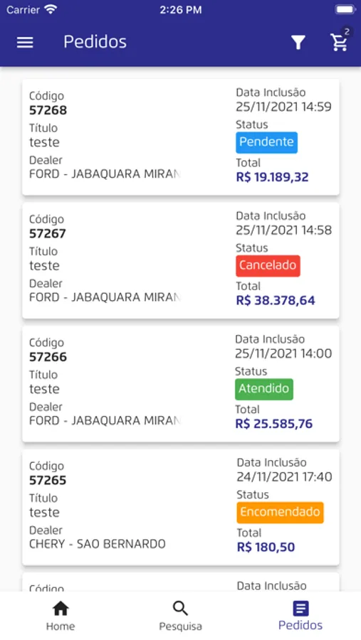 Interface fácil e rápida e com aproximadamente 1000 peças em catálogo das marcas Ford, Hyundai, HMB, Subaru e CAOA Chery.