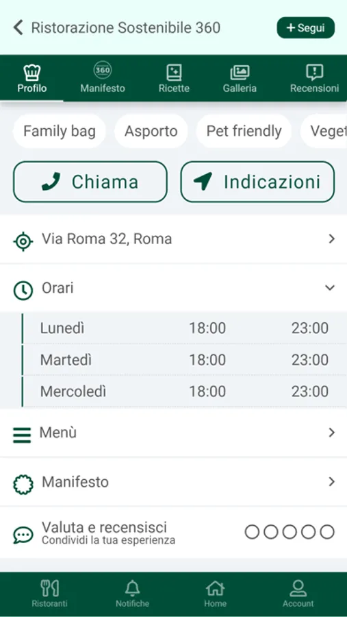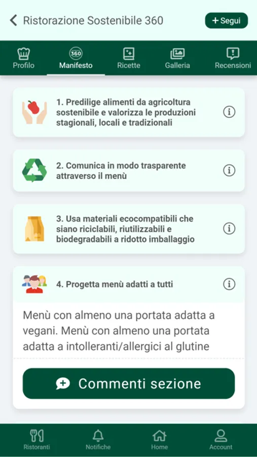 Chi la scarica oltre ad avere indicazioni geolocalizzate dei ristoratori sostenibili potrà valutare e commentare in base alla propria esperienza ristorativa gli impegni sostenibili dei ristoratori certificati per la sostenibilità a 360*