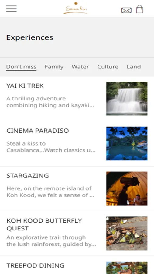 Using our Soneva Kiri app, you can easily view your specially curated itinerary, on-the-go. Find out what's on at our resort and plan your unforgettable stay. Learn more about our one-of-a-kind experiences at the touch of a button, with something for guests of all ages, from underwater adventures or mindful Conscious Experiences to exploring the wonders of Koh Kood. Discover our dining destinations or indulge in a delicious meal in your private villa – view our menus, place your order and communicate any specific details to our Culinary Team. Browse holistic therapies, massages and spa rituals on your own device. If you need any further information, simply click on ‘Get in Touch’ and send us a message – our relevant team will get back to you promptly. Enjoy your stay at Soneva Kiri.