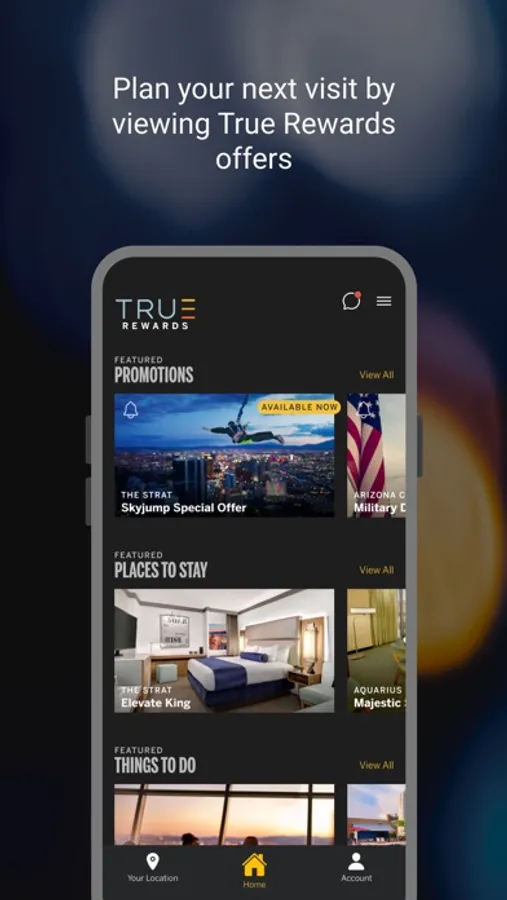 The official mobile app for the True Rewards loyalty program – giving you insider access to the best of Golden Entertainment at our 140+ locations – including:
