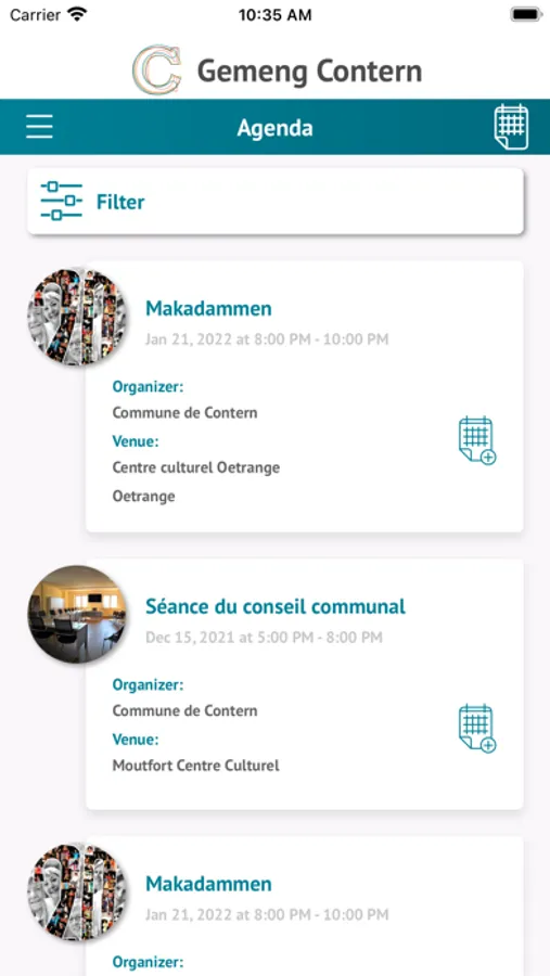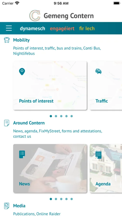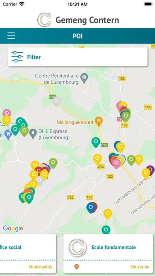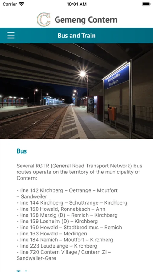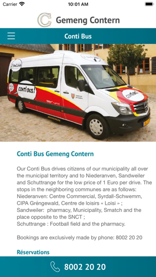 By downloading the new mobile app of the commune of Contern, you can now have easy access to our news and our agenda containing various events in and around our commune. Meanwhile, an integrated map with various points of interest in different categories will help you find exactly what you need. You can also find information about all the bus routes and trains.